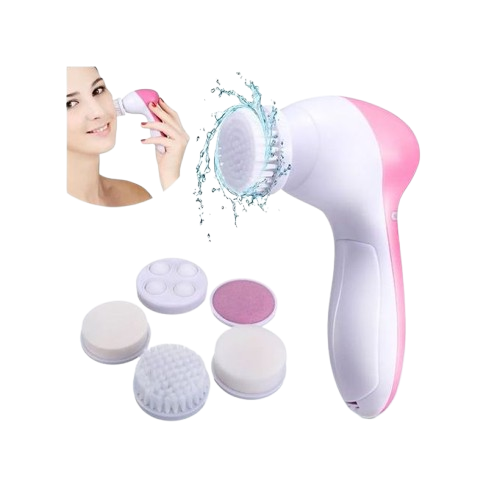 Multi-function 5 in 1 Deep cleansing, facial cleanser, face spa skin care exfoliating brush, latex sponge, rolling massager, cleanser sponge, scrubber, spa cleaning system. (Batteries Not Included) The exact items available are:- the main machine, latex sponge head suitable for around the eyes and cheeks, cosmetic sponge head for cleaning & opening pores and oils, cleansing brush for cleansing the face, scrub massage head for exfoliating dead skin and ball massage head for massaging the face with moisturizer oil to make the skin absorb.