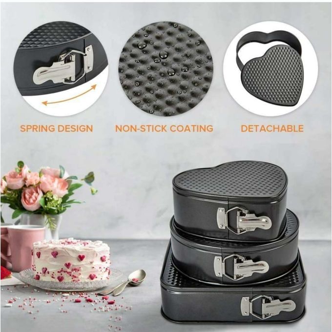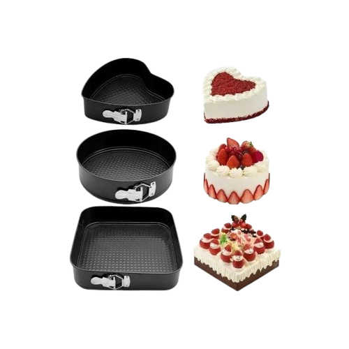 • Non-Stick Cake Pans Tray Bakeware Springform Tins Baking Trays Pans – Pack of 3 Square, Round & Heart Baking Tins